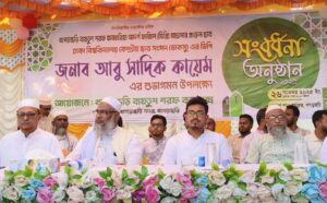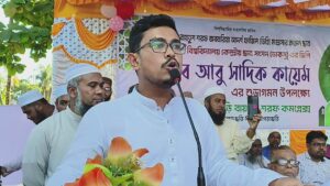 সংবর্ধনা অনুষ্ঠানের বক্তব্যে-ডাকসু ভিপি সাদিক কায়েম।