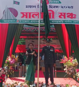 স্টাফ রিপাের্টার:: খাগড়াছড়ির গুইমারায় যথাযথ মর্যাদা ও বর্ণিল আয়োজনে মধ্য দিয়ে মহান বিজয় দিবস পালিত হয়েছে। মঙ্গলবার (১৬ ডিসেম্বর ২০২৫) সূর্যোদয়ের সাথে সাথে তোপধ্বনীর মাধ্যমে বিজয় দিবসের কর্মসূচির সূচনা হয়।