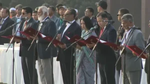 জাতীয় সংসদ ভবনের দক্ষিণ প্লাজায় আয়োজিত এক জমকালো অনুষ্ঠানে রাষ্ট্রপতি মো. সাহাবুদ্দিন নতুন মন্ত্রিসভার সদস্যদের শপথ বাক্য পাঠ করান।