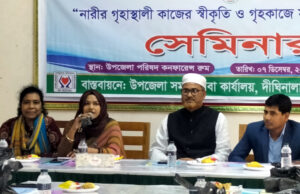 মো সোহেল রানা,দীঘিনালা:: খাগড়াছড়ি দীঘিনালা উপজেলা নারীর গৃহাস্থালী কাজের স্বীকৃতি ও গৃহকাজে সহযোগিতা” শীর্ষক সেমিনার অনুষ্ঠিত হয়েছে। বৃহস্পতিবার(৭ডিসেম্ব) সকাল সাড়ে ১১টায় দীঘিনালা উপজেলা সেমিনার কক্ষে সমাজসেবা কার্যালয়ের আয়োজনে নারীর গৃহাস্থালী কাজের স্বীকৃতি ও গৃহকাজে সহযোগিতা” শীর্ষক সেমিনারে দীঘিনালা উপজেলা সমাজসেবা কর্মকর্তা মো শামসুল আলম এর সঞ্চালনায় উপজেলা নির্বাহী কর্মকর্তা মুহাম্মদ আরাফাতুল আলম এর প্রধান অতিথি হিসেবে বক্তব্যে রাখেন উপজেলা পরিষদ চেয়ারম্যান আলহাজ্ব মোঃ কাশেম।